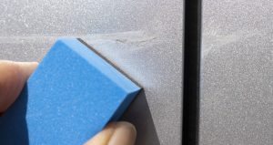 次に、傷内部の錆やささくれた古い塗膜を取り除きます。下地に達している傷の場合、先の細い工具などで傷の内部を軽くこすり、浮き錆などを丁寧にかき出します。