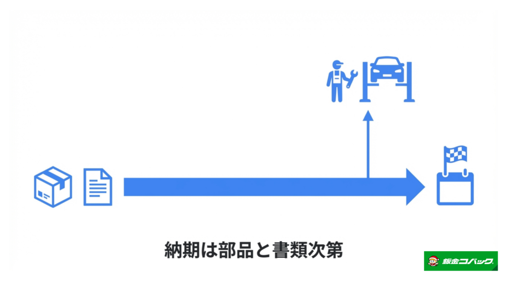 修理期間が長引く原因は、現場の作業遅れだけではありません。実は、「書類の不備」や「手続きの遅滞」が、納車を数日〜1週間単位で遅らせているケースが非常に多いのです。