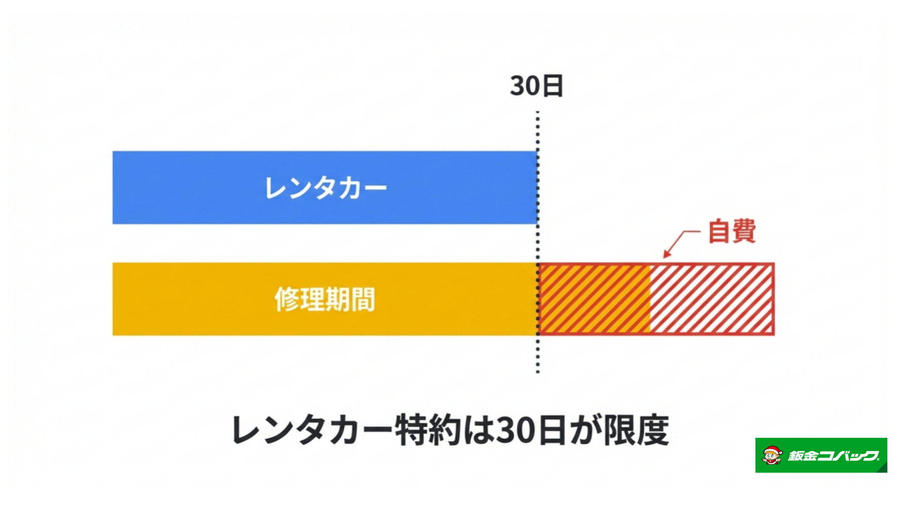 修理期間中の「代車費用」が出る条件や、レンタカー特約の30日ルールについての詳細✔