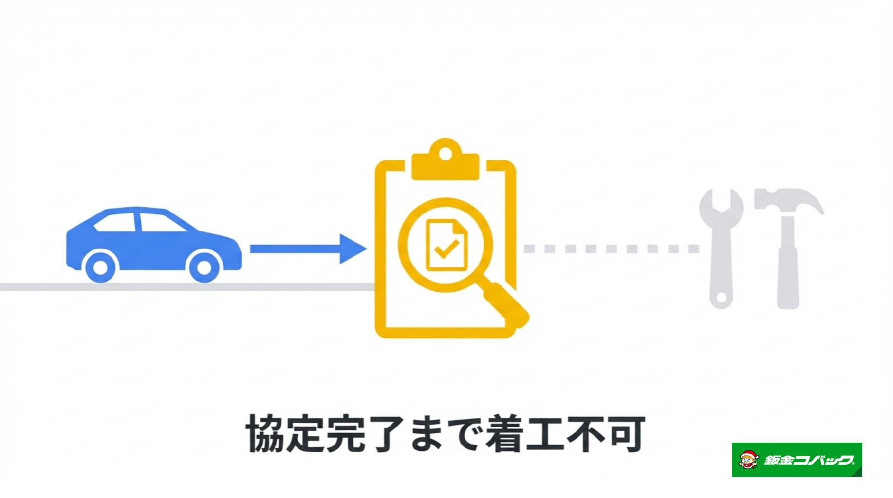 しかし、保険修理の場合はそうはいきません。あなたが修理に同意しても、「お金を払う保険会社」が内容に同意(協定)しない限り、工場は作業に着手できないのです。もし見切り発車で修理を始めてしまい、後から保険会社に「この部品交換は認められない」と言われたら、その費用は誰も払ってくれないトラブルになるからです。