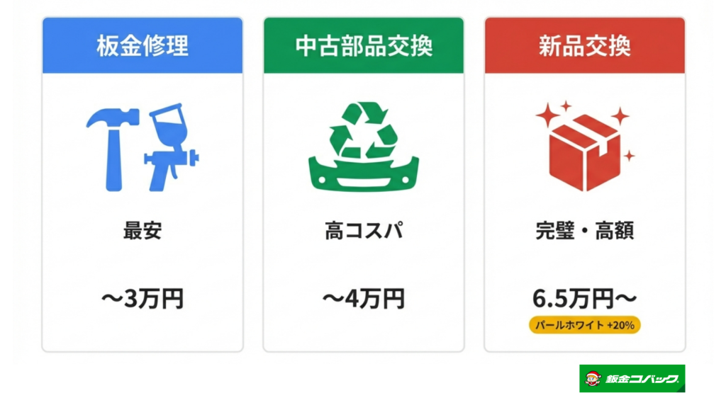 私の経験則では、修理見積もりが「新品バンパー価格の7割」を超えたら、交換を検討すべきタイミングです。