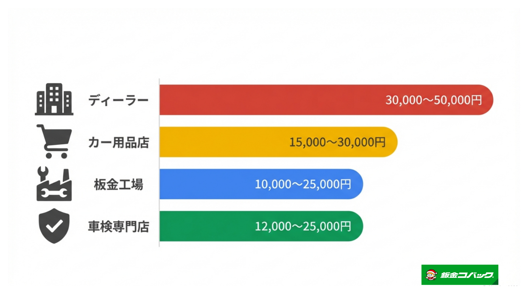 実は、バンパーの修理費用は依頼する業者や傷の程度によって、数千円で済むこともあれば、数万円の差が出ることも珍しくありません。