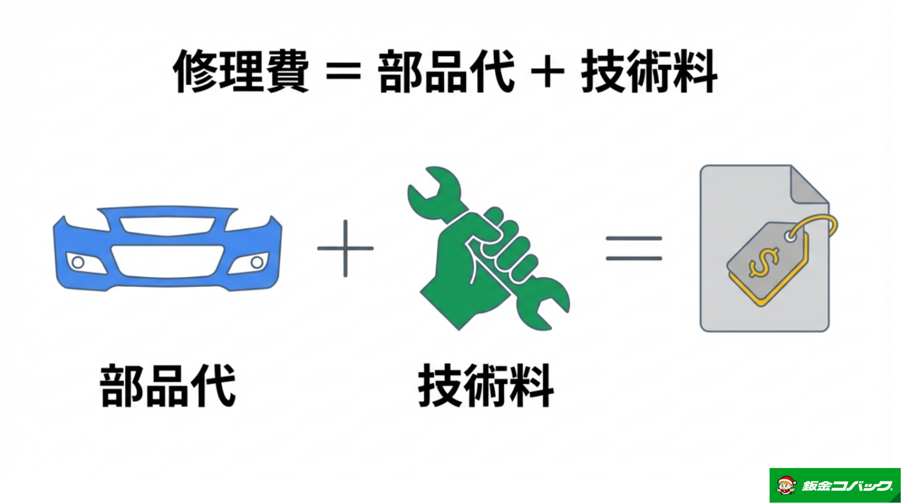 修理見積もりの金額は、大きく分けて2つの要素で構成されています。「モノの値段(部品代)」と「ヒトの値段(工賃)」です。
