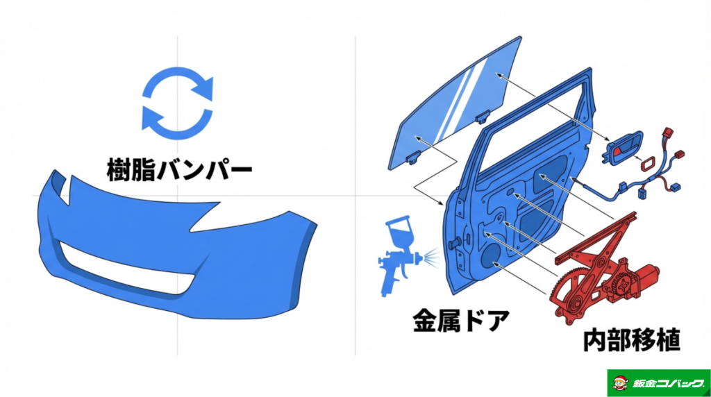 「板金修理」と「パーツ交換」のどちらが早いのか、それぞれのメリットと納期の関係✔