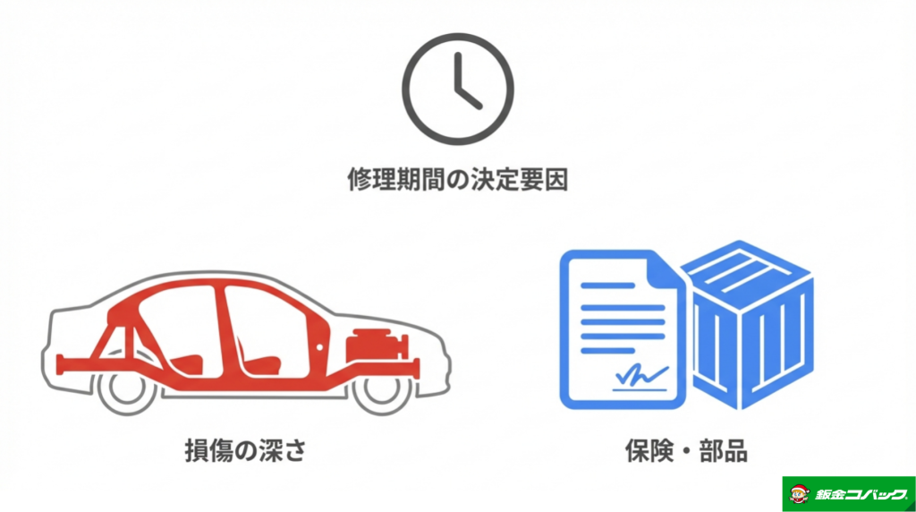 損傷レベル別の平均的な修理日数と、期間を左右する外部要因(部品・保険等)の正体✔